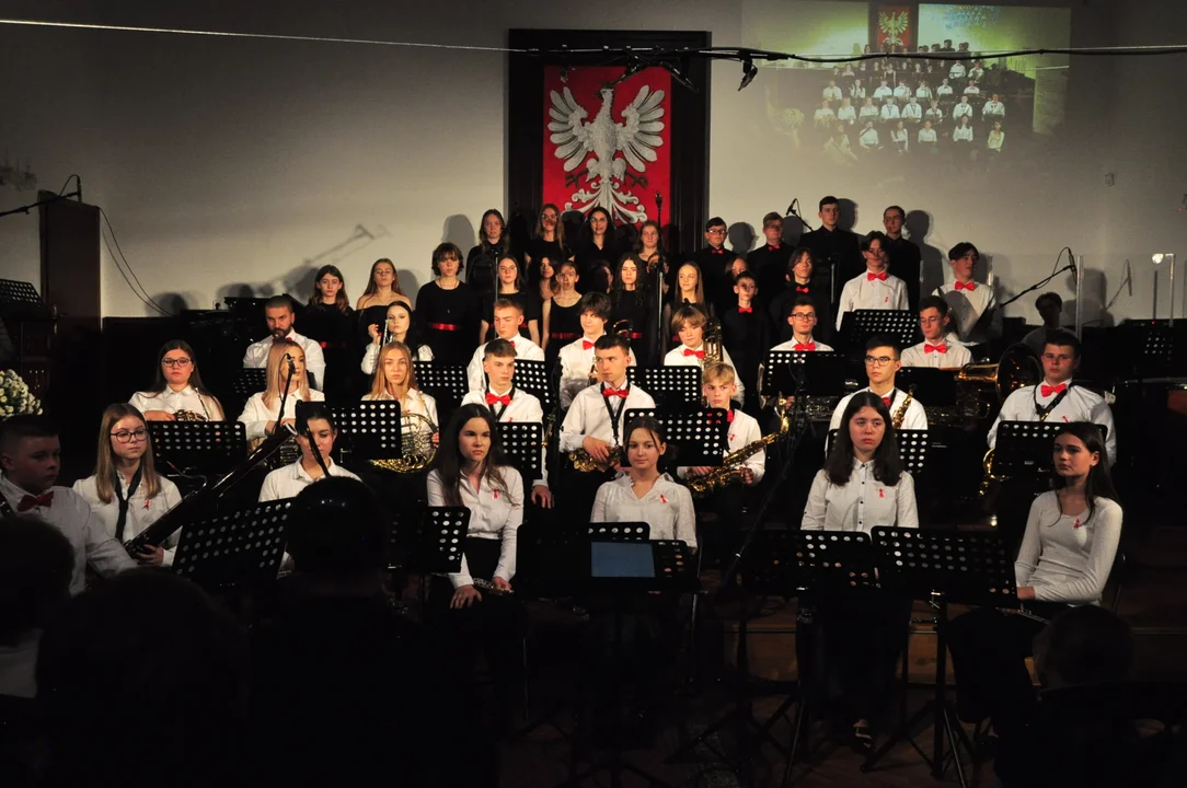 Uświetnienie Święta Niepodległości nadała odśpiewana ,,Rota” przez chór przy akompaniamencie orkiestry. Liczne recytacje: ,, Co to jest Polska”, ,, Listopadowy pejzaż”, jak i utwory wokalne ,, Uwierz Polsko”, ,, Rozkwitały pąki białych róż”, przeniosły słuchaczy w świat sprzed wielu lat i wspomnień. Każdy z użytych instrumentów podczas koncertu tworzył odrębną melodię, a łącząc się z innymi tonami tworzono muzyczne piękno, doniosłe brzmienie podkreślające ważność tej chwili i święta. Była to muzyka na wysokim poziomie, dzięki której obecni mogli przeżyć podkreślaną w tekstach i utworach ważność wydarzenia, kolejnej rocznicy odzyskania przez Polskę Niepodległości.