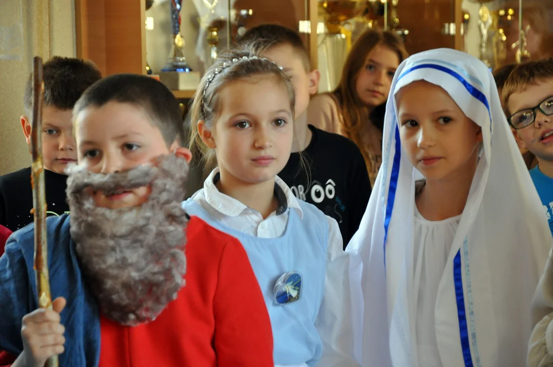 Dzisiaj przebrało się ponad dwudziestu uczniów. Wśród dzieci można było spotkać błogosławioną Karolinę, Maryję, Świętego Mikołaja, Ojca Pio czy Faustynę.