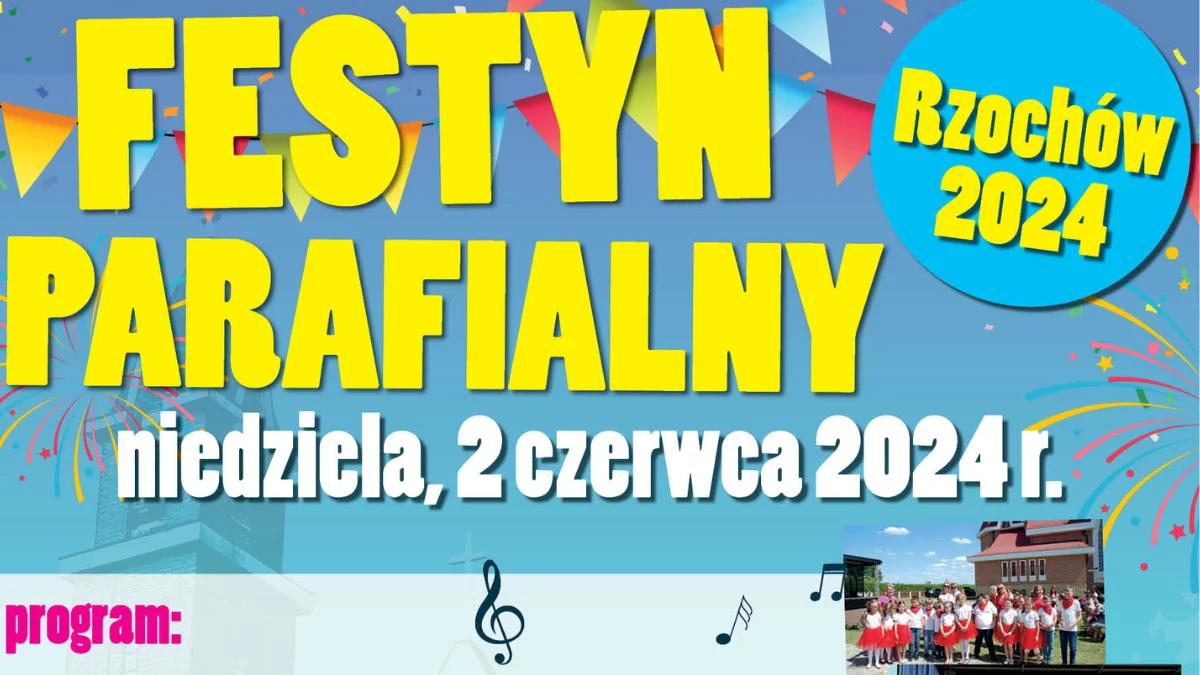 Od godziny 14:00 w niedzielę 2 czerwca w Rzochowie na placu wokół kościoła będzie odbywał sie Festyn Parafialny. Organizatorzy zapewniają dużo zabawy dla dzieci, dużo ulubionej muzyki dla starszych. Dzieci ze Szkoły Podstawowej nr,12 w Rzochowie również przygotowały się na ten dzień, aby był urozmaicony w repertuarze.