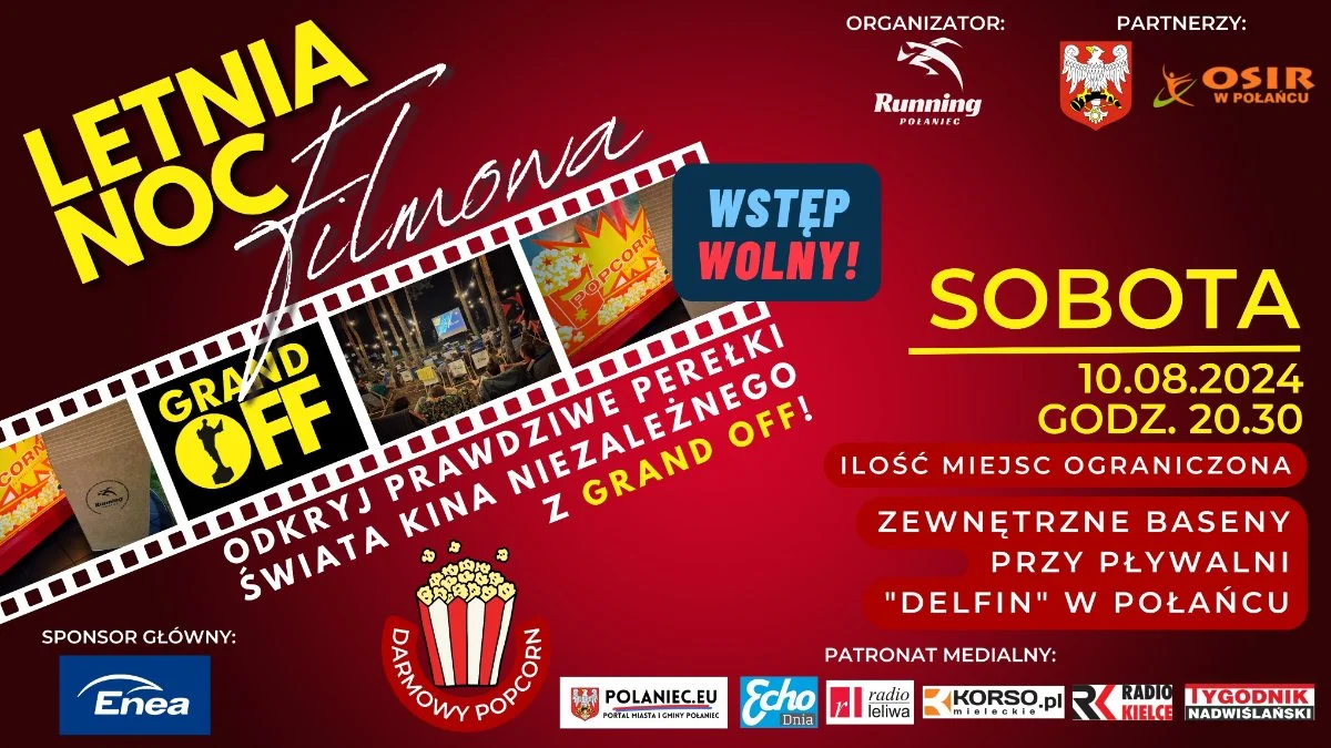 III edycja Letniej Nocy Filmowej to gratka dla fanów niezależnego kina. Na zewnętrznych basenach przy pływalni "Delfin" w Połańcu zaprezentowane zostaną filmy nagrodzone na Przeglądzie Najlepszych Niezależnych Krótkich Filmów Świata podczas prestiżowego Festiwalu Grand OFF.