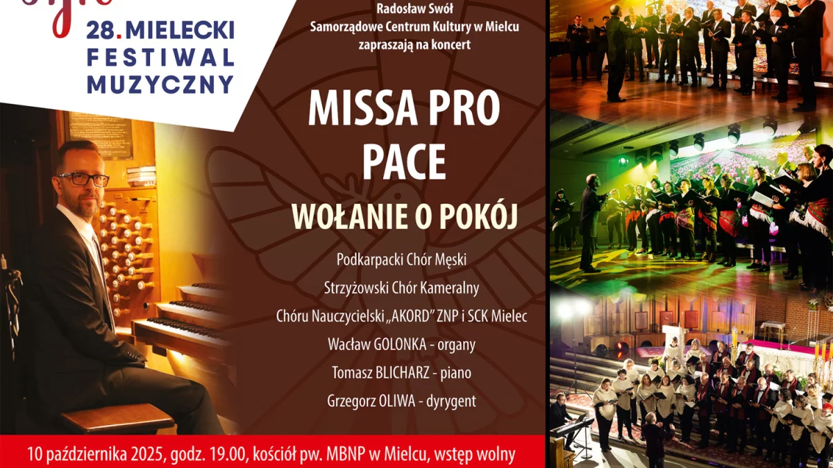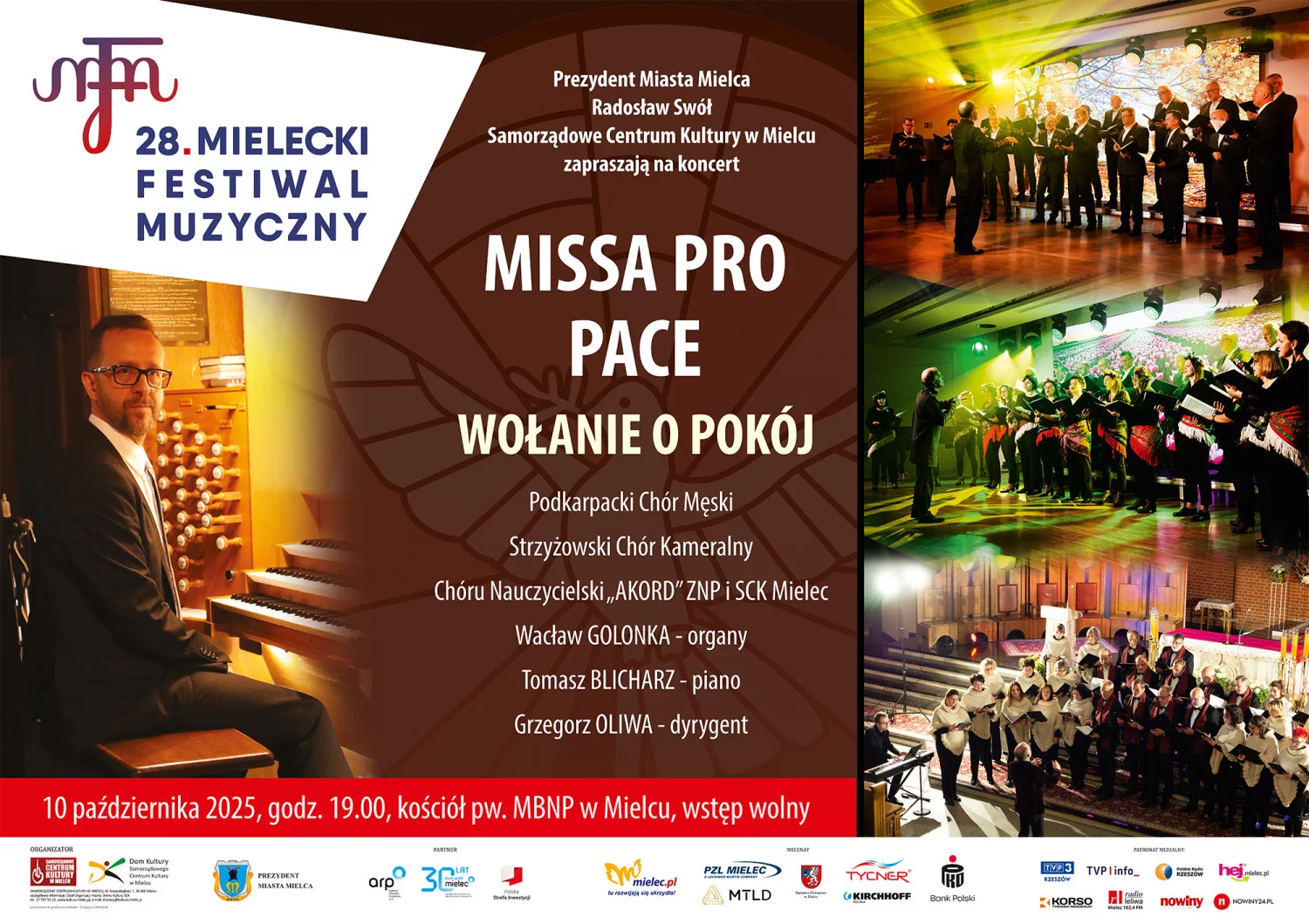 Koncert, objęty patronatem Prezydenta Miasta Mielca Radosława Swoła, będzie muzycznym przesłaniem pokoju i refleksji nad współczesnym światem. W programie zabrzmi monumentalne dzieło „Missa Pro Pace” - msza o pokój, której wykonanie zgromadzi znakomitych artystów z regionu.