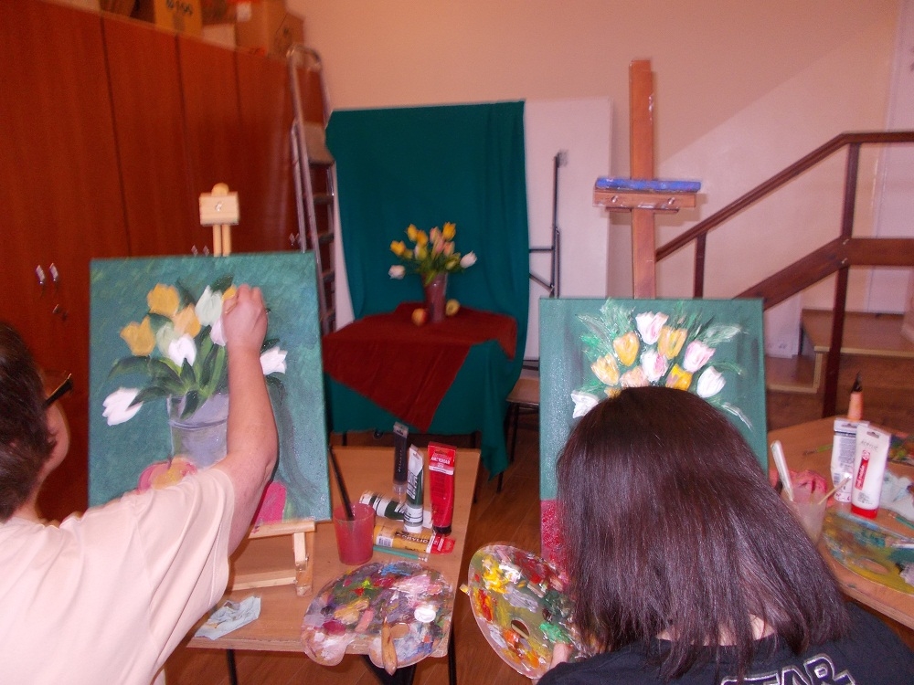 Uczestnicy mają za sobą pewne doświadczenia a co za tym idzie ulubione techniki, mogli więc wybierać to,co najbardziej trafia w ich gust. Po zakomponowaniu całości i kilku wskazówkach warsztatowicze przystąpili do malowania. Martwa natura wciąż potrafi zachwycić. Zwykłe, przedmioty, znajdujące się na co dzień w zasięgu ręki, przedstawione przez artystę wrażliwego na ich piękno wciąż potrafią poruszyć widza.
