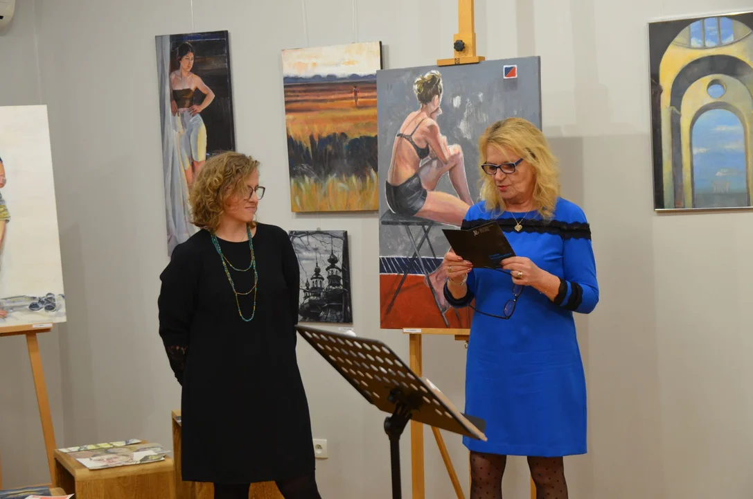 - Chciałabym podziękować za zaproszenie do Ośrodka Kultury. Jest to miejsce bardzo bliskie mojemu sercu, które zawsze ciepło mi się kojarzy. Wiele relacji i przyjaźni się tu zaczęło, które trwają do dziś. Wiele dobrych chwil i wspomnień jest z tym Ośrodkiem związanych. Moja przygoda z malarstwem trwała chwilę w wieku licealnym i wtedy się też zakończyła. Następnie, gdy moja córka miała półtora roku to od nowa zaczęłam malować i tak z przerwami na wychowanie dzieci trwa to do dziś. Cieszę się, że mogę tworzyć w pracowni. Raz w tygodniu spotykamy się w grupie młodych artystów i wspólnie malujemy. Nawzajem się inspirujemy i tworzymy co bardzo nas ubogaca. Zapraszam serdecznie do oglądania wystawy i w razie pytań zapraszam do wspólnej rozmowy – zwróciła się do zebranych artystka.