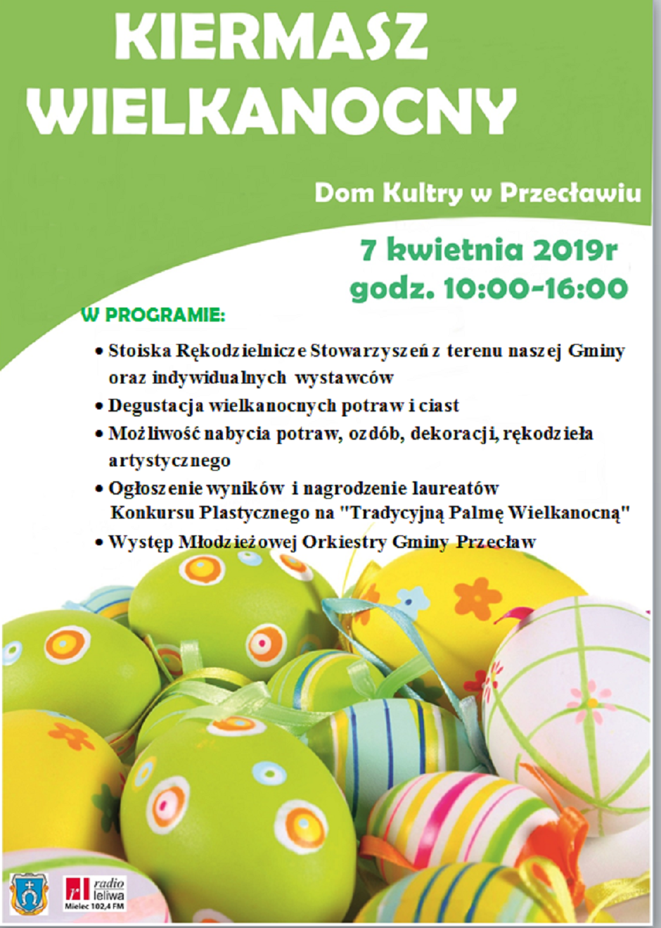 O godz. 14:00 poznają Państwo wyniki konkursu plastycznego na “Tradycyjną Palmę Wielkanocną”. Krótko zaprezentuje się również Młodzieżowa Orkiestra Gminy Przecław.