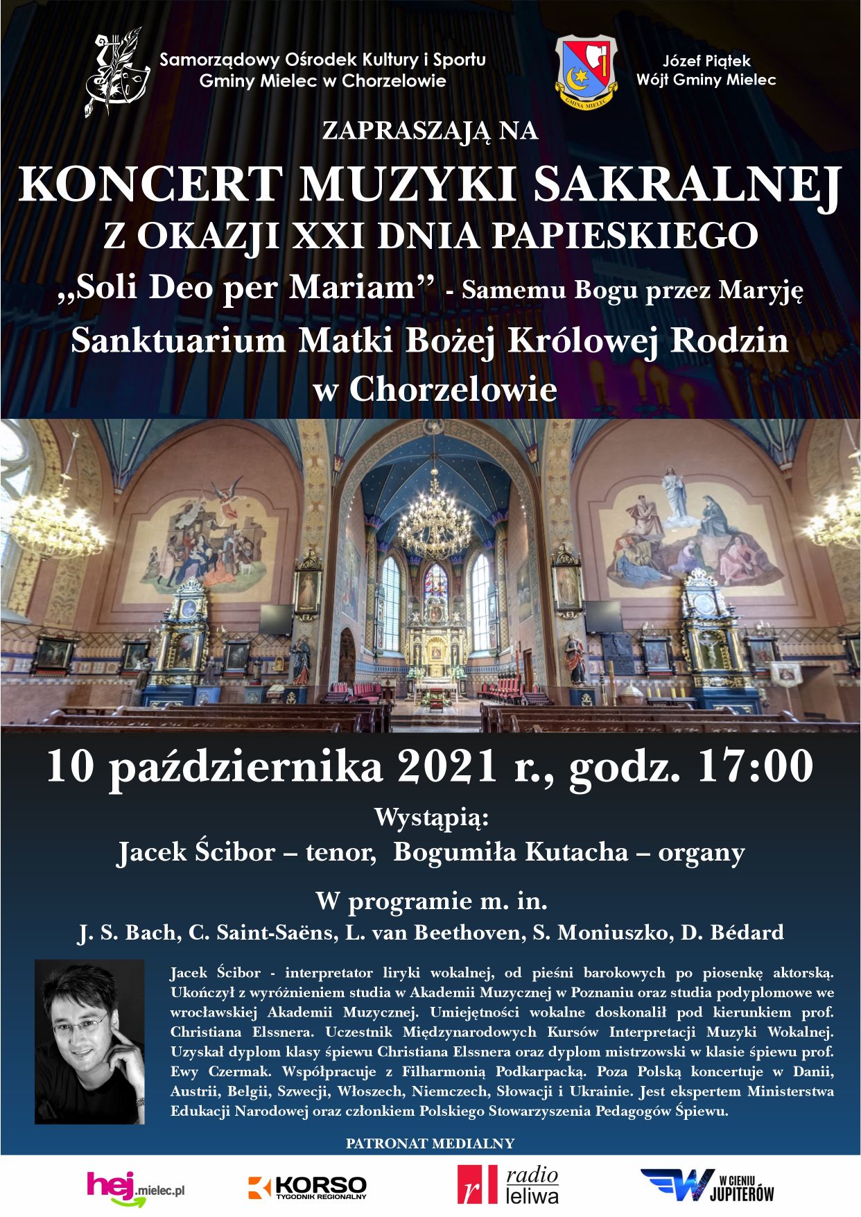 W programie zaplanowano utwory m. in. J. S. Bacha, L. van Beethovena, S. Moniuszko oraz D. Bédarda. Swoją tematyką koncert nawiązywał będzie do osób dwóch wyjątkowych Polaków – Świętego Jana Pawła II, z okazji XXI Dnia Papieskiego oraz Kardynała Stefana Wyszyńskiego, dla którego cytat biblijny „Soli Deo per Mariam” /Samemu Bogu przez Maryję/ był motywem życiowym.