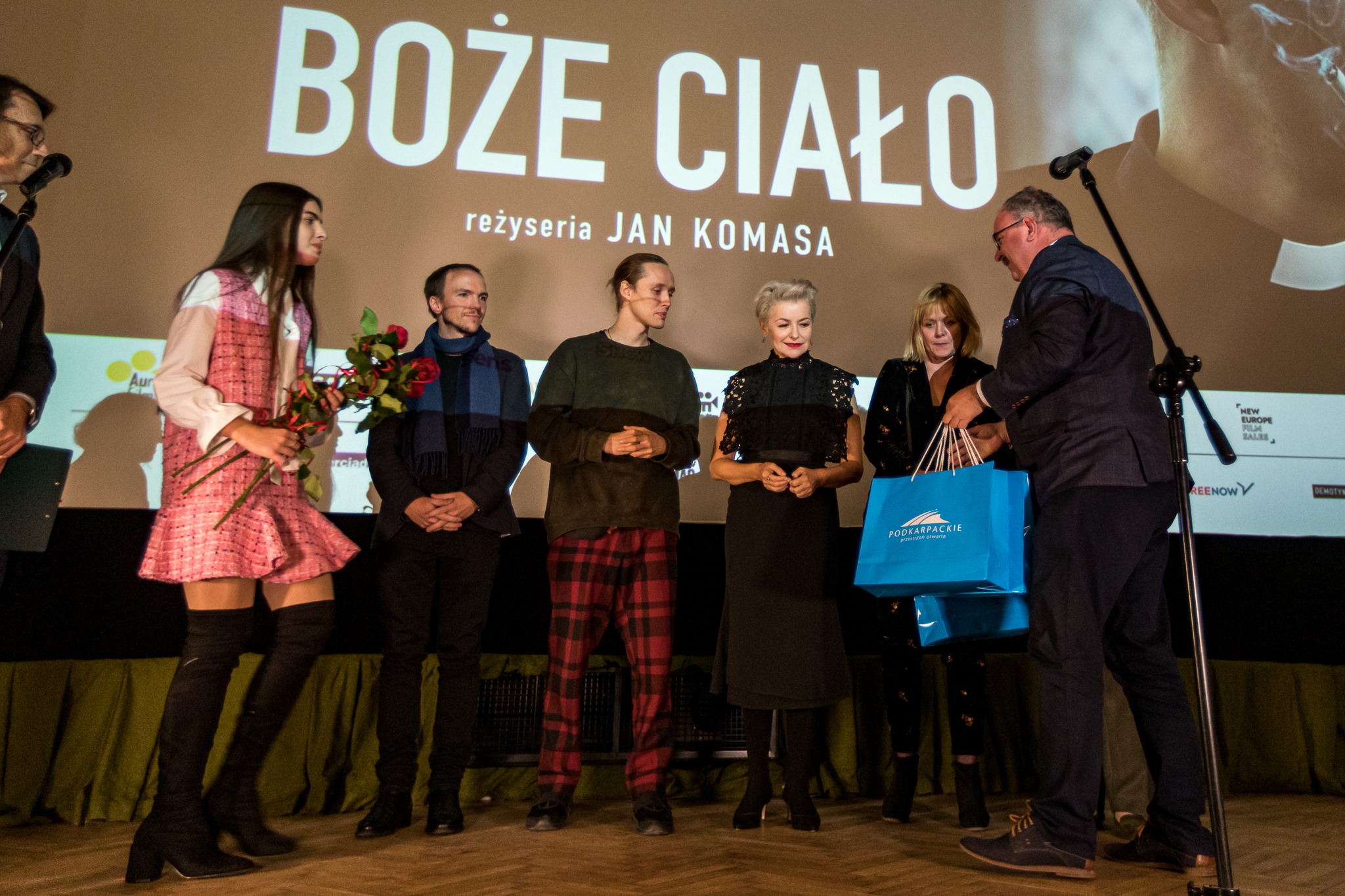 W jego rolę brawurowo wciela się uznawany za jedno z największych odkryć aktorskich ostatnich lat – Bartosz Bielenia („Na granicy”). Pozostałą część obsady dopełniają utalentowani aktorzy młodego pokolenia – Eliza Rycembel („Obietnica”, „Carte Blanche”) i Tomasz Ziętek („Cicha Noc”, „Konwój”), zdobywcy prestiżowych wyróżnień dla najlepszych aktorów festiwalu w Gdyni – Aleksandra Konieczna („Ostatnia Rodzina”) i Łukasz Simlat („Amok") oraz Leszek Lichota – główna gwiazda jednego z najpopularniejszych krajowych seriali – „Wataha”. Autorem nagrodzonego w konkursie Script Pro scenariusza do „Bożego Ciała” jest Mateusz Pacewicz. Za zdjęcia odpowiada ceniony operator filmowy – Piotr Sobociński Jr. („Wołyń”, „Bogowie”, „Drogówka”).