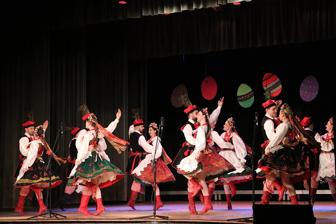 Nasze zespoły folklorystyczne – jak zwykle przy pełnej widowni - zaprezentowały tym razem tańce regionalne, m.in. suitę tańców lasowiackich, tańce ziemi rzeszowskiej, suitę tańców zagłębia dąbrowskiego, tańce wielkopolskie, krakowiaka.