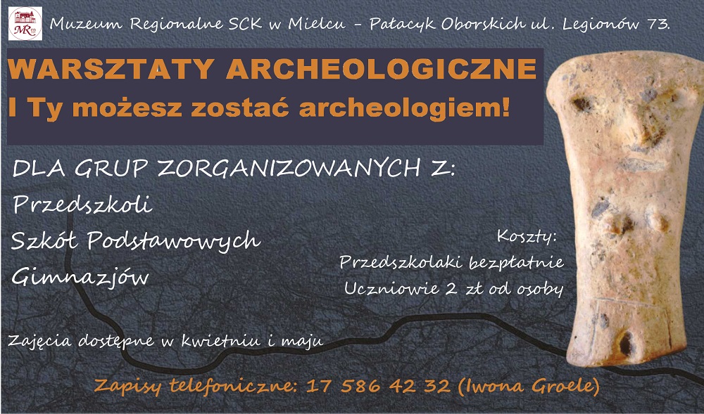 Archeologiczne warsztaty edukacyjne są realizowane w Pałacyku Oborskich w kwietniu oraz maju, od poniedziałku do piątku w godzinach 8-16. Zajęcia trwają od 60 do 90 minut.