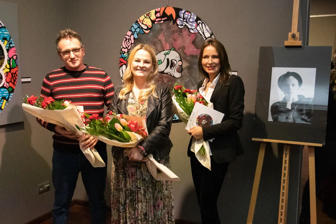 Wyjątkowo liczna publiczność wernisażu miała także okazję wysłuchać krótkiego wspomnienia o artyście jego żony, Oli Wieczerzak.