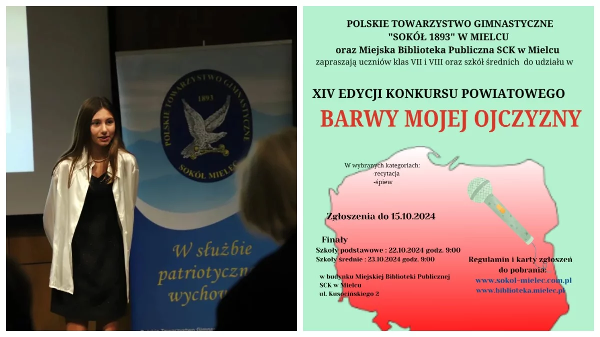 Konkurs „Barwy Mojej Ojczyzny” organizowany przez Polskie Towarzystwo Gimnastyczne „Sokół 1893” w Mielcu oraz Miejską Bibliotekę Publiczną SCK w Mielcu na stałe wpisał się w kalendarz wydarzeń edukacyjnych w naszym regionie. W tym roku odbędzie się już jego XIV edycja, skierowana do uczniów starszych klas szkół podstawowych (klasy VII-VIII) oraz uczniów szkół średnich.