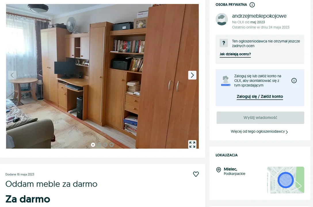 Urządzenie mieszkania to duży koszt, jeśli jednak nie zależy nam na nowych meblach prosto ze sklepu, możemy poszukać wśród używanych. Wśród tych rzeczy znajdują się m.in. meblościanki czy sofy dziecięce. Mielczanie chętnie oddają także niezniszczone buty czy ubrania.