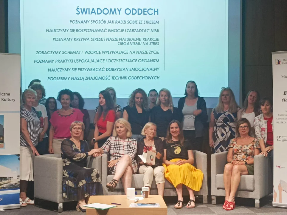 Pierwsze z cyklu zajęcia warsztatów oddechowych odbyły się w niedzielę, 25 czerwca w Bibliotece przy ul. Kusocińskiego w Mielcu. Podczas zajęć uczestnicy uczyli się form pracy z oddechem. Trening poprowadziła Elżbieta Rokoszak, Trenerka Oddechu Transmodalnego przy Instytucie Oddechu Michała Godlewskiego.