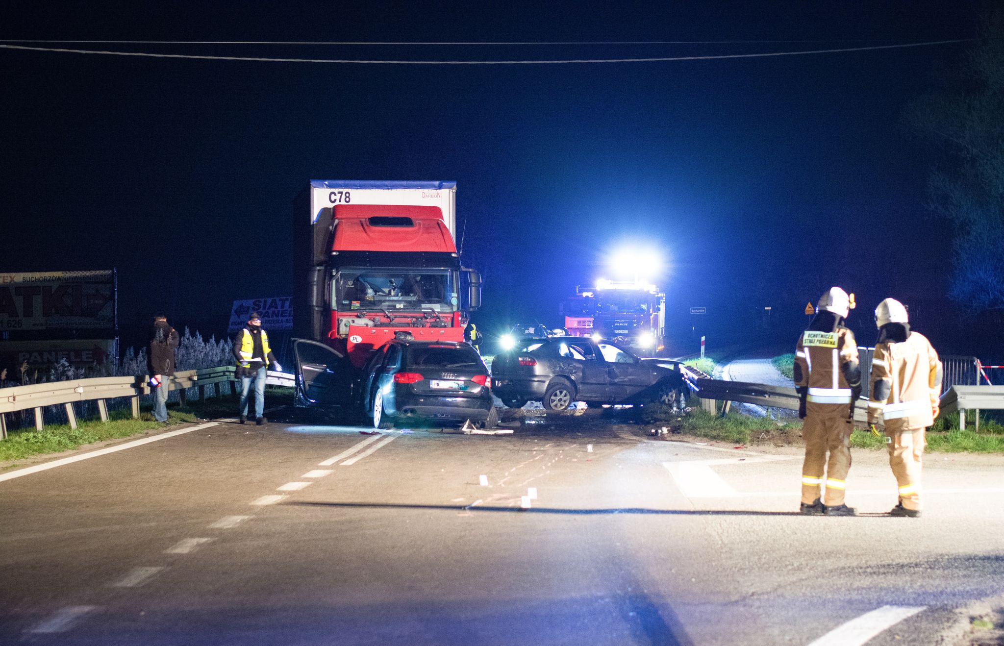 Do wypadku doszło w niedzielę (25 kwietnia) o godz. 20, w Suchorzowie na drodze wojewódzkiej nr 985 relacji Mielec – Tarnobrzeg. Ze wstępnych ustaleń policjantów pracujących na miejscu zdarzenia wynika, że kierujący audi, 23-letni mieszkaniec Krakowa, wyjeżdżając z drogi podporządkowanej, nie zatrzymał się przed znakiem "stop" i wyjechał przed jadący od strony Mielca pojazd marki seat. Kierujący seatem, 20-letni mieszkaniec gminy Baranów Sandomierski, uderzył w tył audi, a następnie wjechał w barierę energochłonną. Audi siłą uderzenia zostało zepchnięte na przeciwległy pas ruchu i wjechało pod nadjeżdżającą ciężarówkę.