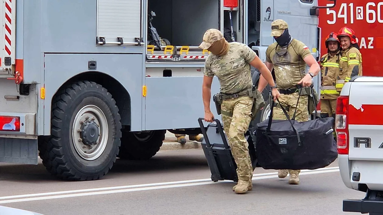 Mieszkańcy są bezpieczni, jednostka jest na miejscu, pirotechnicy rozkładają robota do rozbrajania ładunków wybuchowych.