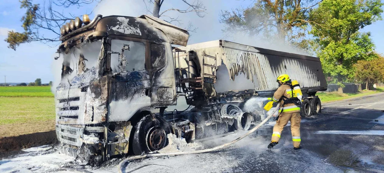 Około godziny 14 na trasie Opatów-Iwaniska zapaliła się ciężarówka. Pojazd spłonął całkowicie z powodu samozapłonu, który wywołało zwarcie instalacji elektrycznej ciągnika siodłowego marki Scania przyczepionego do naczepy. Sama naczepa została częściowo nadpalona.