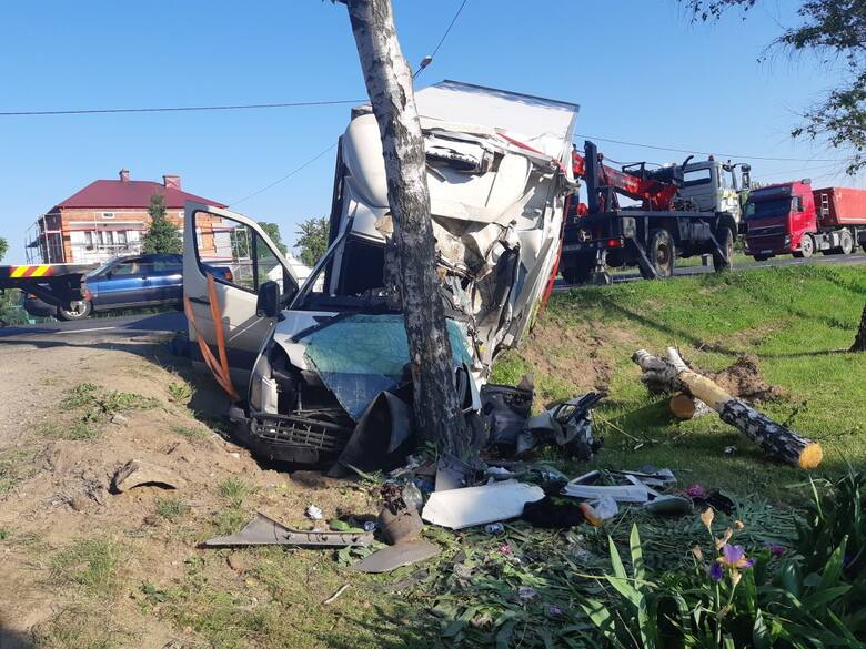 Według informacji przekazanych przez świętokrzyską policję, 11 czerwca, kilkanaście minut przed godziną 2 doszło do wypadku na drodze krajowej numer 9 w miejscowości Okalina-Kolonia. Dostawczy volkswagen crafter prowadzony był przez 54-latka z Rzeszowa, a pasażerką była 50-letnia żona mężczyzny. Jechali z ładunkiem truskawek. Z nieustalonych przyczyn samochód zjechał na przeciwległy pas, a potem do rowu, gdzie uderzył w drzewo.