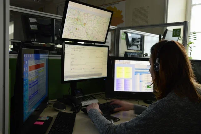 Dyspozytor mówi mu, żeby ten się uspokoił i dodaje: "łączę z pogotowiem, powiadomię policję, niech pan stoi przy tym budynku, wskaże pan służbom, nie rozłączać się".