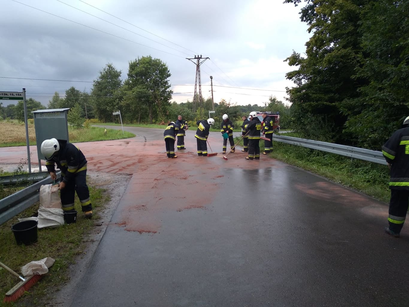 Tak było i w piątek, 27 sierpnia w miejscowości Jamy. Strażacy musieli oczyścić drogę w tej okolicy, zneutralizowali plamę z użyciem specjalnego sorbentu.