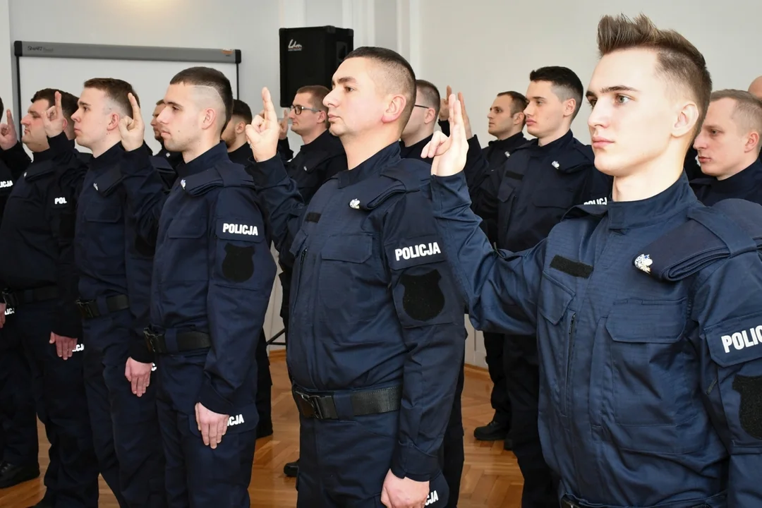 35 nowo przyjętych policjantów złożyło dziś w Komendzie Wojewódzkiej Policji w Rzeszowie ślubowanie. Odbierając legitymacje z rąk nadinspektora Dariusza Matusiaka, wzięli na siebie obowiązki i trudy związane z policyjną służbą. Teraz przed nimi kilkumiesięczny kurs podstawowy, po którym wrócą do swoich macierzystych jednostek i tam rozpoczną służbę.