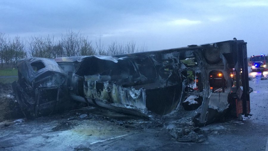 - W wypadku zginął kierowca osobówki, natomiast cysterna przewożąca 22 tysiące litrów oleju całkowicie spłonęła.