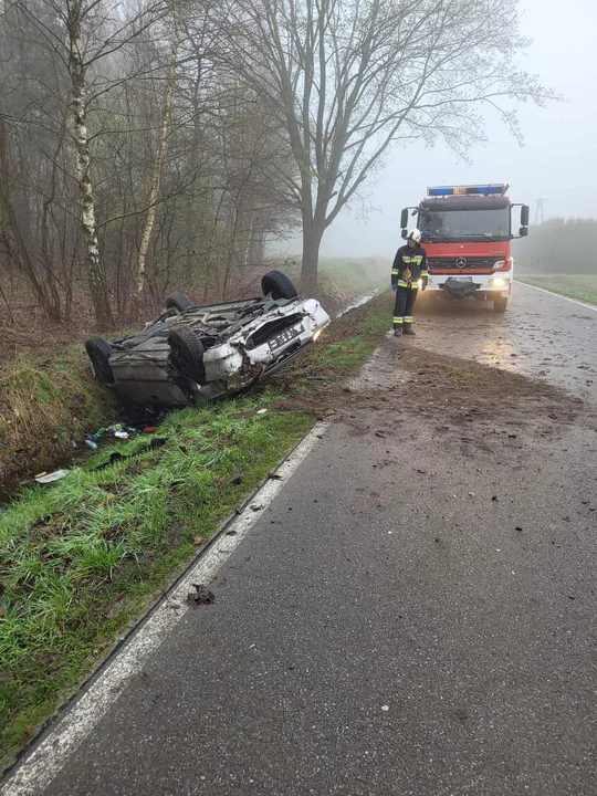 Kierujący samochodem marki Honda Civic, stracił panowanie nad pojazdem, a następnie dachował w przydrożnym rowie, razem z nim podróżowały 4 osoby.