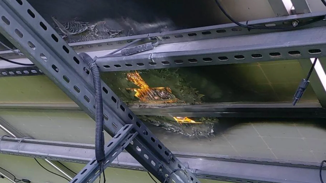 Pożar przy zamontowanych panelach fotowoltaicznych