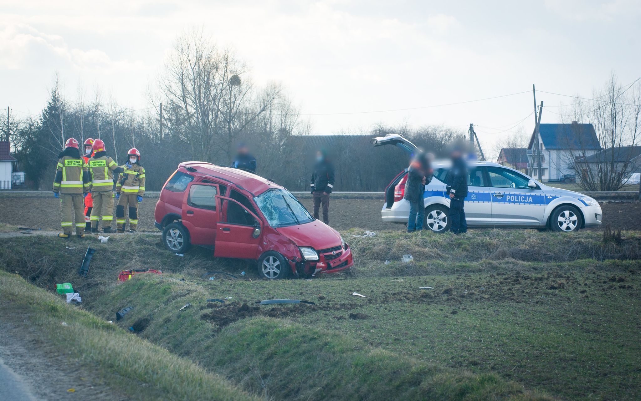 Ze wstępnych ustalen wynika, że kierujacy suzuki stracił panowanie nad pojazdem i wjechał do przydrożnego rowu. Kiedy na miejscu pojawili się pierwsi świadkowie, na miejscu pasażera z tyłu pojazdu siedział mężczyna, który twierdził, że nie wie jak się znalazł w pojeździe.