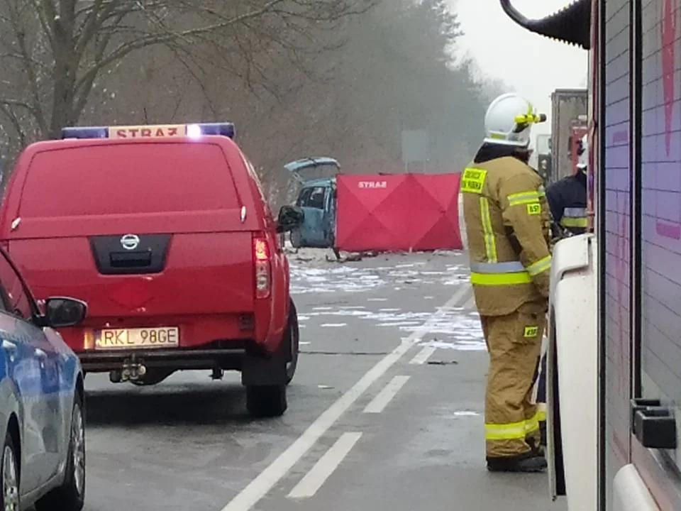 Kolbuszowscy policjanci pracują na miejscu tragicznego wypadku, do jakiego doszło w Przyłęku, na drodze wojewódzkiej nr 875, relacji Kolbuszowa - Mielec. Ze wstępnych ustaleń policjantów wynika, że kierująca citroenem zderzyła się czołowo z samochodem ciężarowym marki DAF. Niestety, w wyniku zderzenia kobieta zginęła na miejscu. Kierowca dafa nie odniósł obrażeń, był trzeźwy.