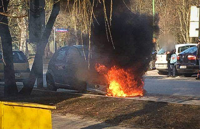 Na parkingu przy ul. Solskiego zapalił się samochód osobowy marki Citroen.