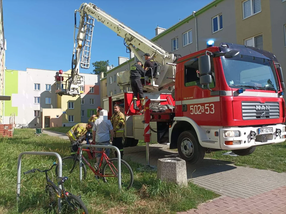 Na miejscu pracowali policjanci i strażacy, którzy próbowali dostać się do mieszkania.