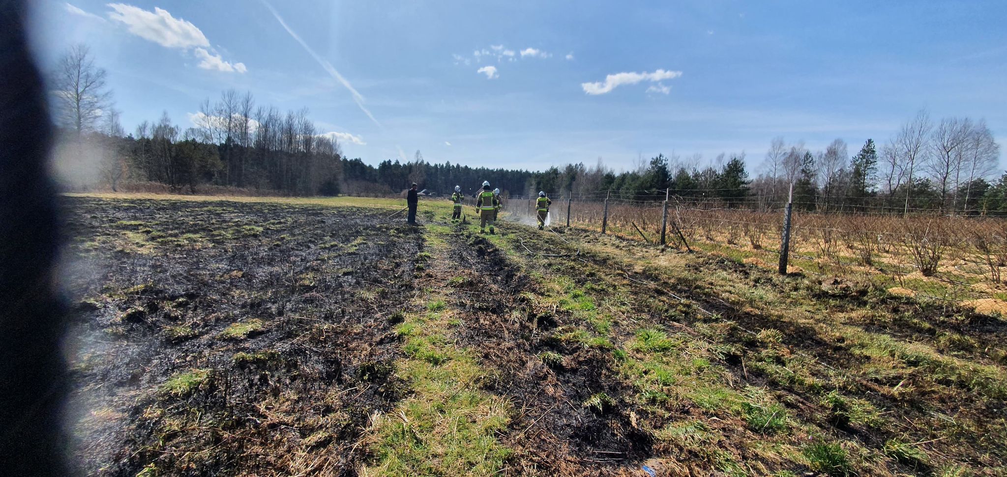 - O godz. 13:14. zostaliśmy zadysponowani przez Stanowisko Kierowania Komendanta Powiatowego PSP w Mielcu do pożaru nieużytków rolnych w miejscowości Książnice (Wólka Książnicka). Po dotarciu na miejsce działań, przystąpiliśmy do gaszenia pożaru traw przy pomocy tłumic oraz szybkiego natarcia. Spaleniu uległy nieużytki o łącznej powierzchni ok. 15-20 ar. Nie ucierpały jednak żadne zabudowania, a dzięki szybkiej akcji gaśniczej udało się również ocalić pobliską plantację borówki amerykańskiej - informują druhowie z OSP Książnice.