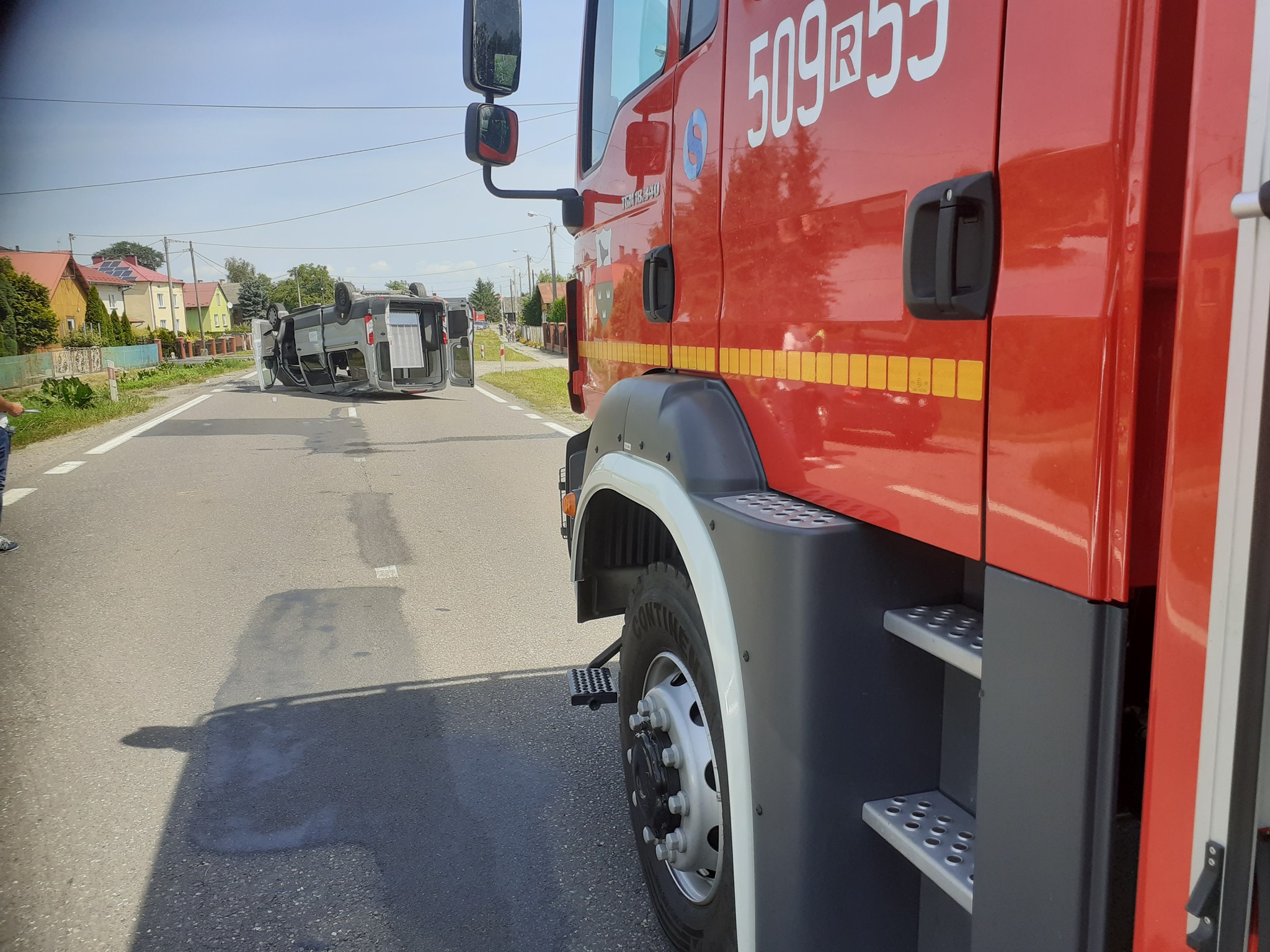 Na miejscu pracują służby ratunkowe. Policja organizuje objazdy dla kierowców.