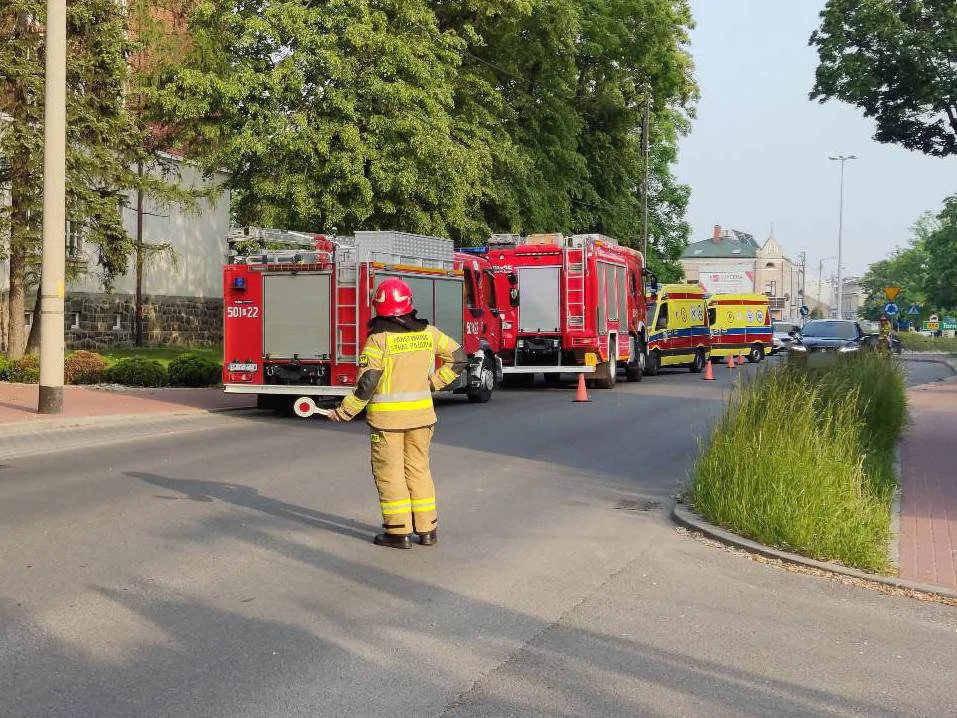 Ulica jest częściowo zablokowana. Policja kieruje ruchem wahadłowo. Na miejscu pracują służby ratunkowe.