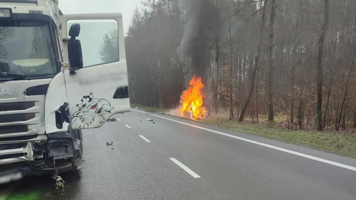 Jak poinformowały służby, na drodze krajowej numer 9 w miejscowości Tarnowska Wola doszło do wypadku, w wyniku którego jeden z samochód zapalił się.
