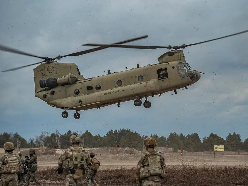 Trwają ćwiczenia 1 Warszawskiej Brygady Pancernej, 18 Dywizji Zmechanizowanej oraz 82nd Airborne Division na poligonie w Nowej Dębie. W promieniu kilkudziesięciu kilometrów słychać było huk wystrzałów. Jednym z elementów wspólnego szkolenia jest desant ze śmigłowca.