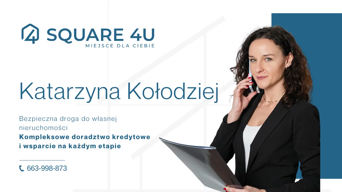 Nazywam się Katarzyna Kołodziej i od ponad 7 lat zawodowo działam w branży nieruchomości. Swoje doświadczenie budowałam od podstaw — zaczynając od realizacji własnej inwestycji deweloperskiej, która do dziś jest jedną z ciekawszych w Mielcu. Dzięki temu doskonale rozumiem zarówno perspektywę inwestora, jak i potrzeby klientów kupujących czy sprzedających nieruchomości.