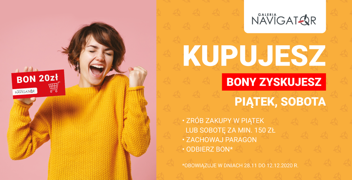 Liczba wydawanych kuponów jest ograniczona! Lista sklepów, w których można zrealizować bon, jest dostępna na stronie www.galerianavigator.pl