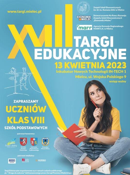 Targi adresowane są do uczniów klas ósmych szkół podstawowych powiatu mieleckiego, ich rodziców i nauczycieli. Uczniowie, w jednym miejscu będą mogli zapoznać się z pełną ofertą kształcenia szkół ponadpodstawowych oraz zasadami rekrutacji na kolejnym szczeblu nauki w roku szk.2023/24.