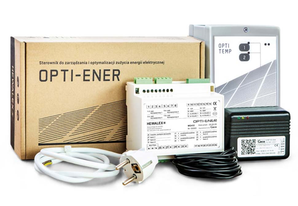 OPTI-ENER to jedyne dostępne rozwiązanie na rynku zgodne z ustawą OZE. W jego skład wchodzą zwykle główny moduł OPTI-ENER oraz Modem EKO-LAN, pozwalający na zdalną obsługę. System wspiera wszystkich tych, którym zależy na oszczędnościach. Daje unikalną szansę na kontrolę zużycia prądu w domu, pozwala decydować o oddawanej do sieci nadwyżce energii i jeszcze bardziej usprawnić działanie instalacji fotowoltaicznej.