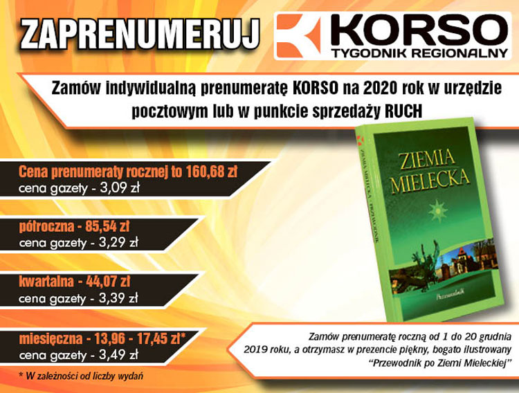 PromowaneZamów indywidualną prenumeratę Korso na 2020 rok w urzędzie pocztowym lub w punkcie sprzedaży RUCH