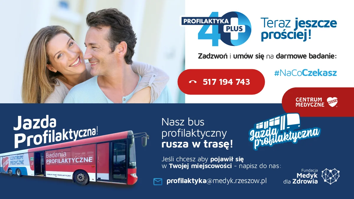 Wszystkie informacje dotyczące zakresu badań oraz jak się na nie umówić, znajdują się na stronie www.medyk.rzeszow.pl/profilaktyka-40/