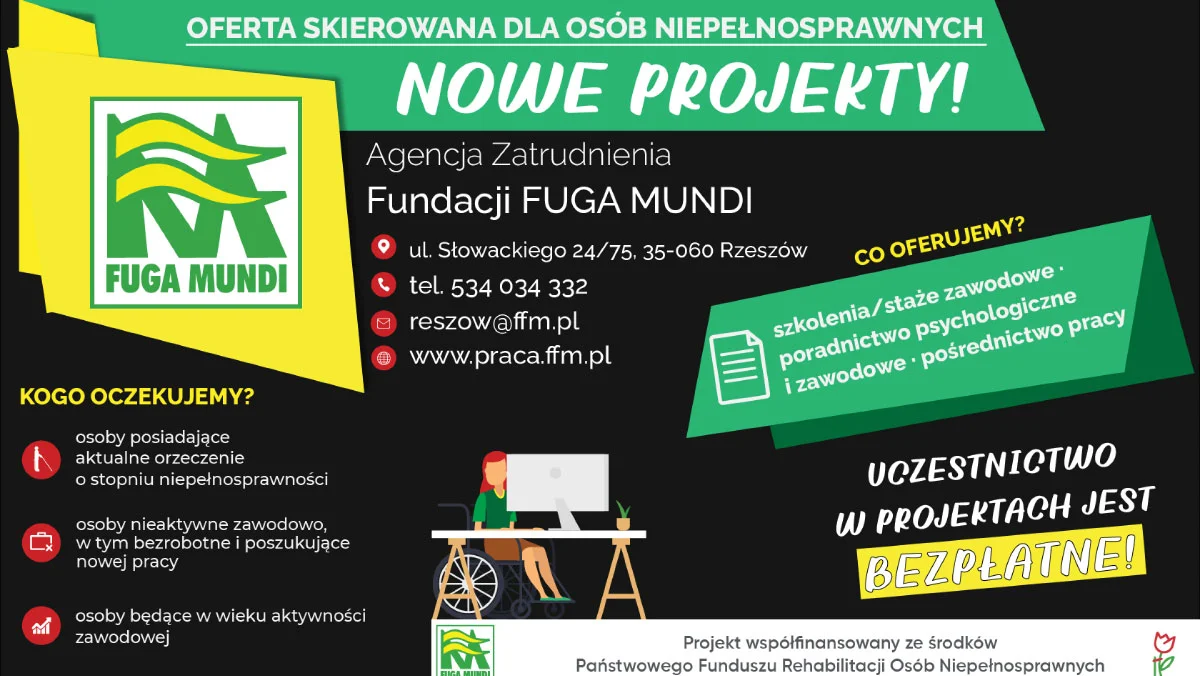 Powyższe formy wsparcia realizowane są w ramach projektu „Stawiamy na pracę” współfinansowanego ze środków Państwowego Funduszu Rehabilitacji Osób Niepełnosprawnych