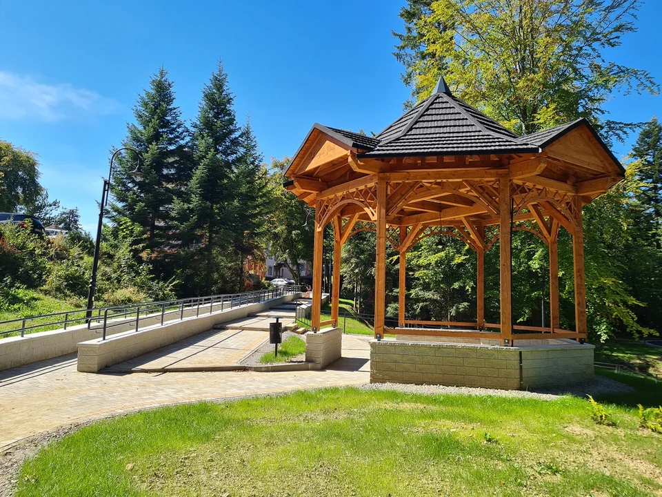 Park zdrojowy zagospodarowano według nowej koncepcji, a zakres prac był tak duży, że realizacja przedsięwzięcia trwała rok. W tym czasie przestrzeń zieleńca podzielono na 2 części. Pierwsza służy dziś relaksowi odwiedzających. Stworzono tu strefę wypoczynku z altankami, tężnią i bujną roślinnością. Druga stawia na sport. Zbudowano w niej plenerową siłownię, ścieżki zdrowia i plac zabaw dla dziecięcych szaleństw. Park zyskał też nowe oświetlenie, monitoring i ogrodzenie, więc stał się bezpieczniejszy. I ładniejszy – za sprawą barwnych rabatek.
