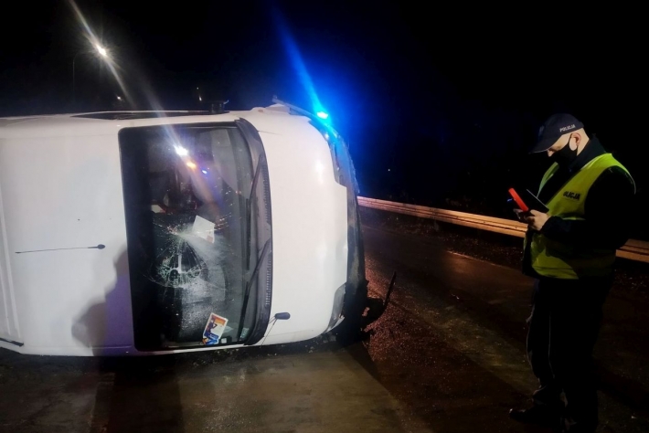 Bus przewrócił się na bok. Mężczyzna ranny
