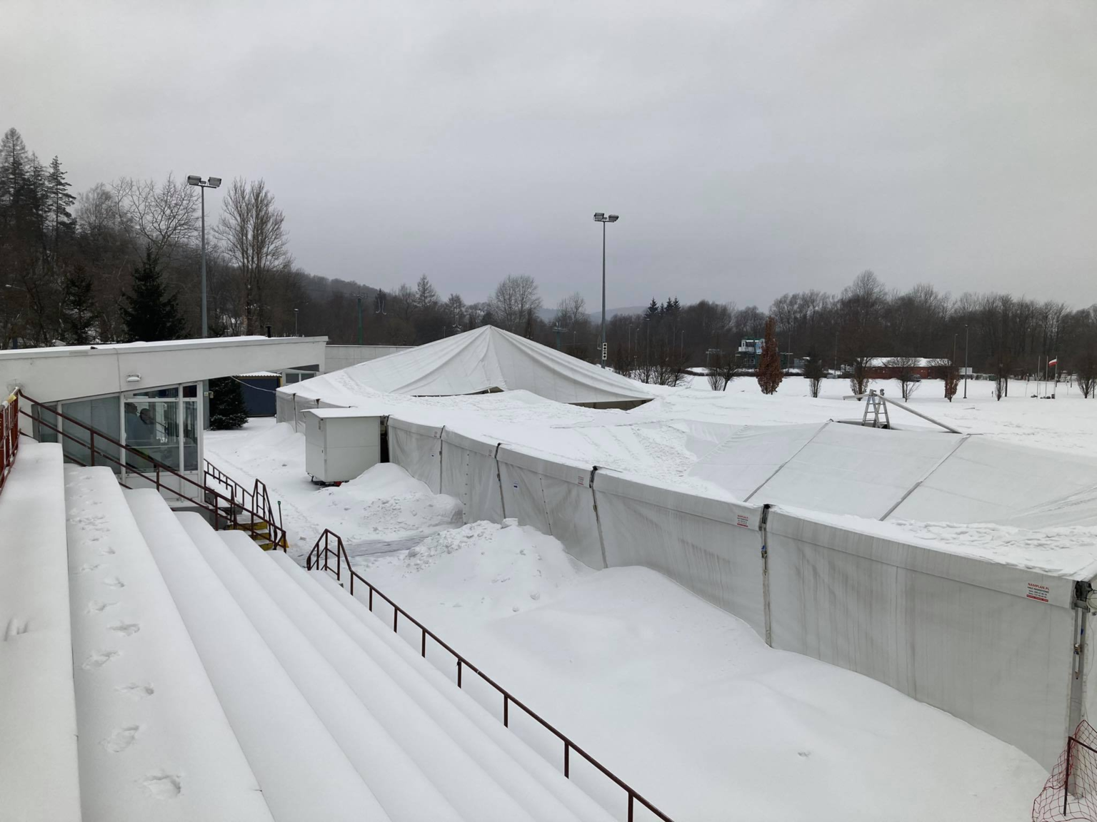 Obfite opady śniegu ponownie sprawiają ogromne kłopoty i prowadzą do katastrof budowlanych. Tym razem naporu śniegu nie wytrzymał dach namiotu sztucznego lodowiska w Przemyślu przy ulicy Sanockiej.