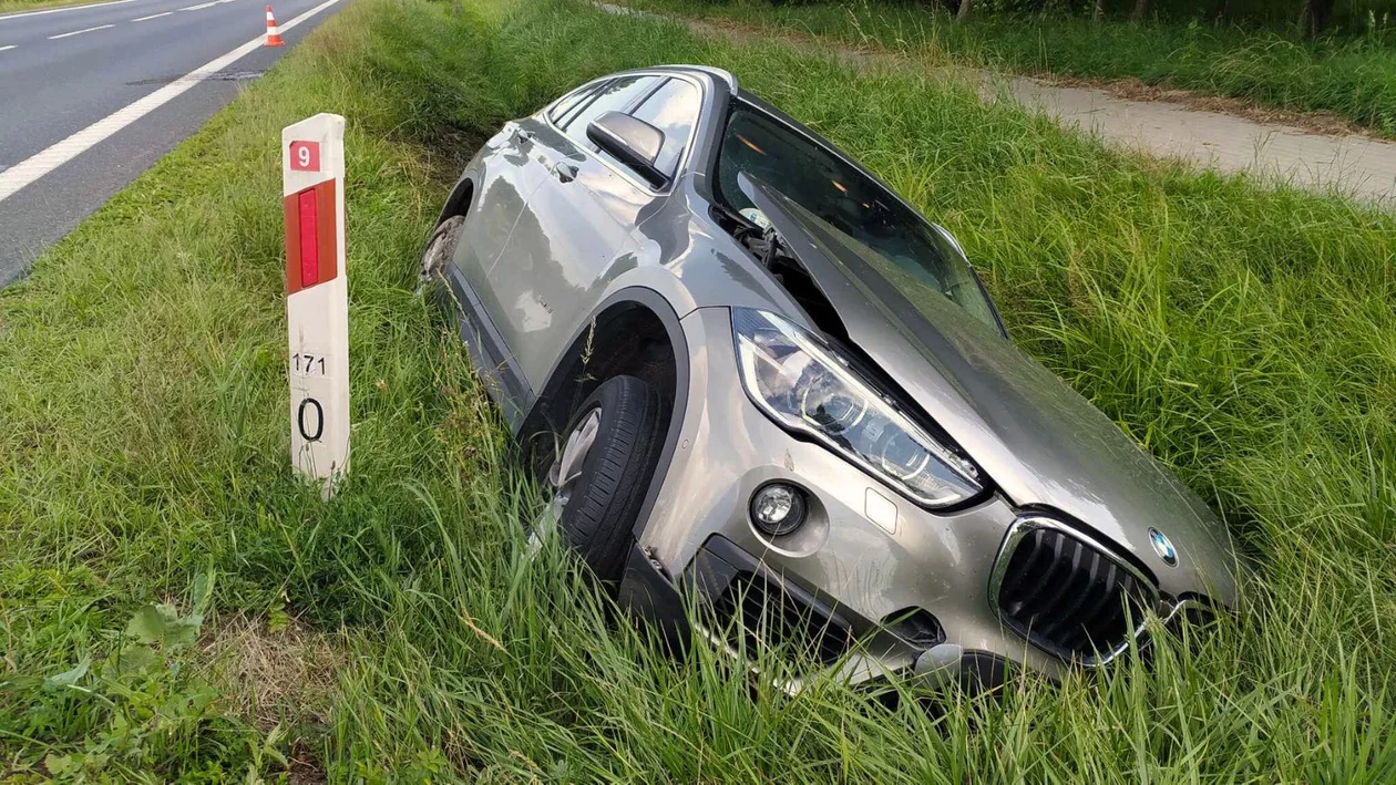 Kupno: Samochodem osobowym wypadł z DK9 i wjechał do rowu. Mężczyzna zasnął za kierownicą [ZDJĘCIA]
