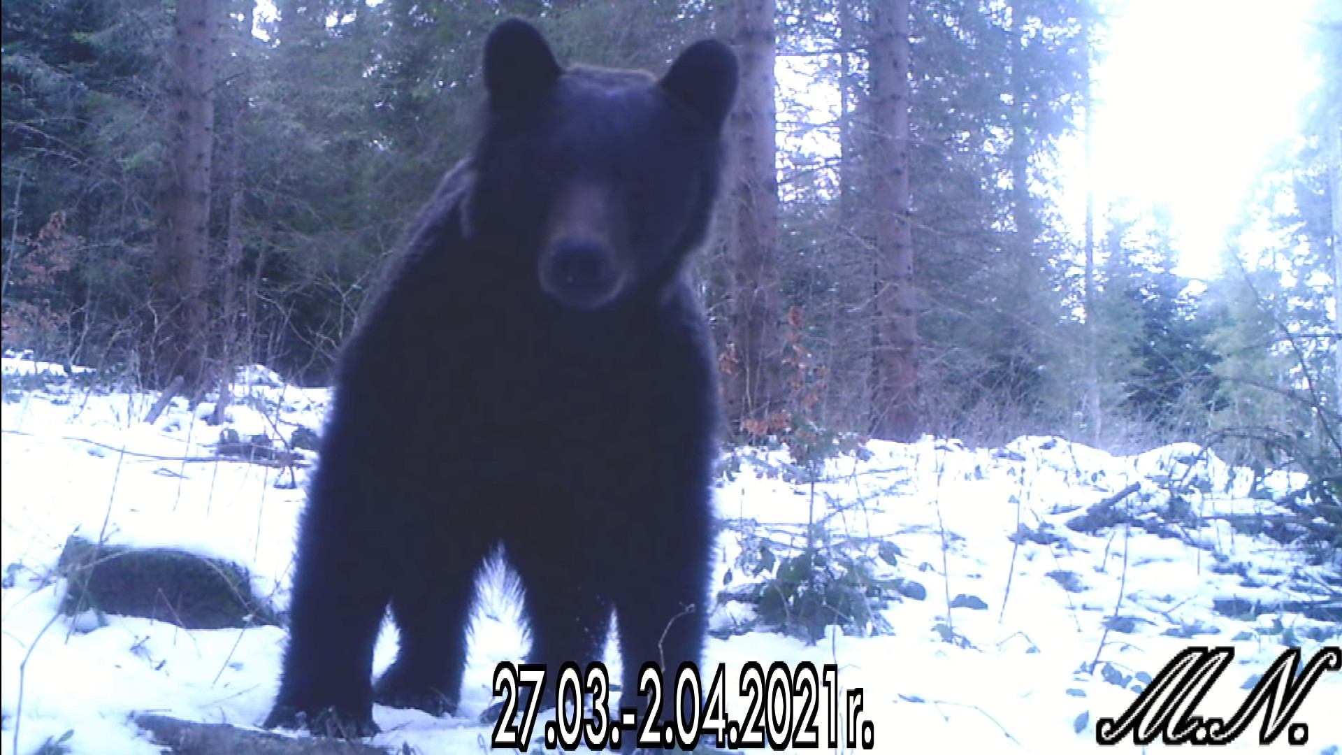 Tydzień przed świętami wielkanocnymi Mariusz Nędzyński - YouTuber i bieszczadnik w ukryciu pozostawił fotopułapkę, która nagrała przeróżne zwierzęta przechadzające się po bieszczadzkich lasach. Na nagraniu widzimy m.in. niedźwiedzia brunatnego, który stanął dosłownie kilka centymetrów od kamery, lecz gdy tylko zauważył leśnika - od razu rzucił się do ucieczki.