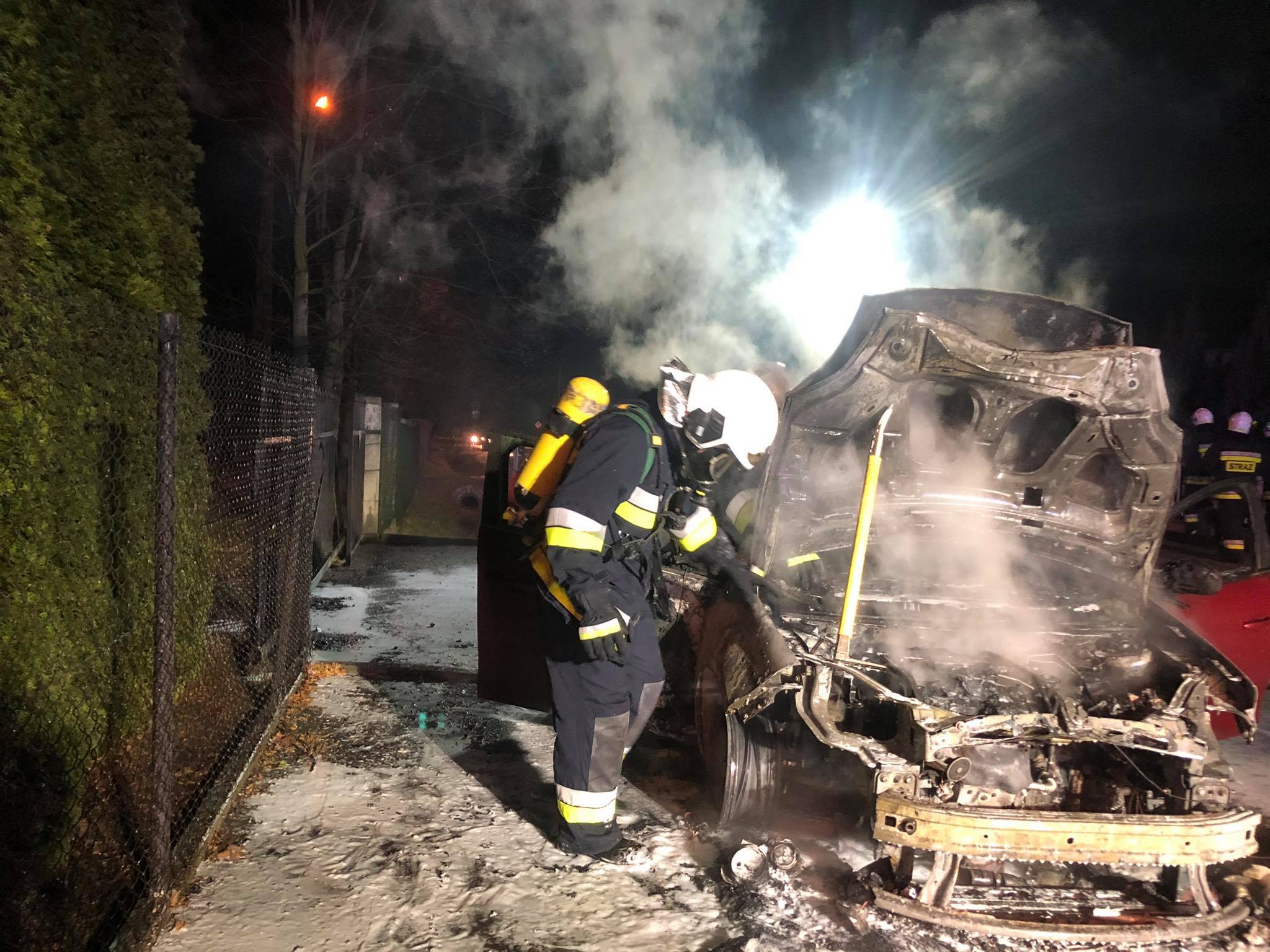 Samochód stanął w płomieniach. Strażacy walczyli z pożarem