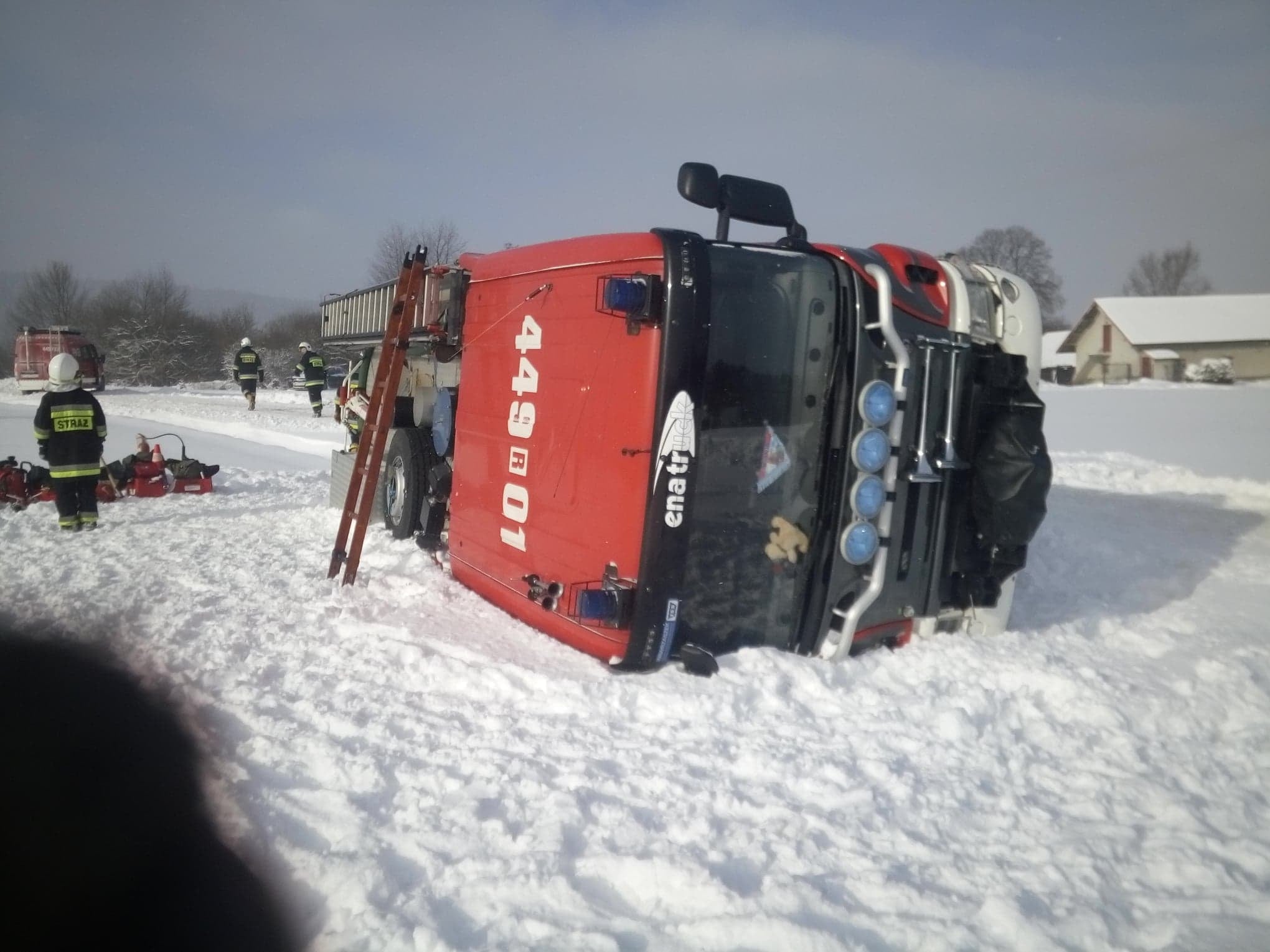 Wóz strażacki przewrócił się podczas akcji
