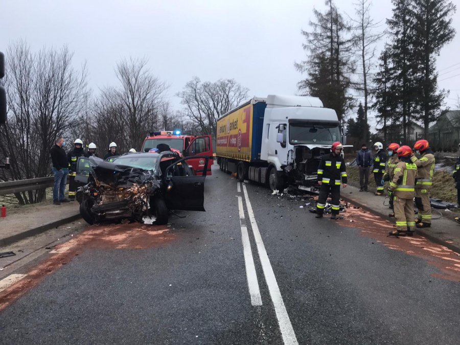 RegionW Nowym Żmigrodzie (powiat jasielski) doszło do poważnego wypadku z udziałem ciężarówki i osobówki. Jedna osoba została ranna.